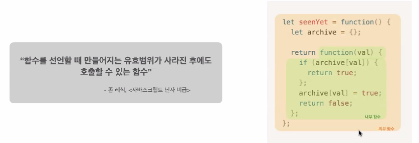 - 정의 : 함수와 함수가 선언된 어휘적(lexical)환경의 조합