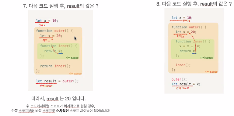 - 안쪽 스코프에서 바깥쪽 스코프로 접근 가능