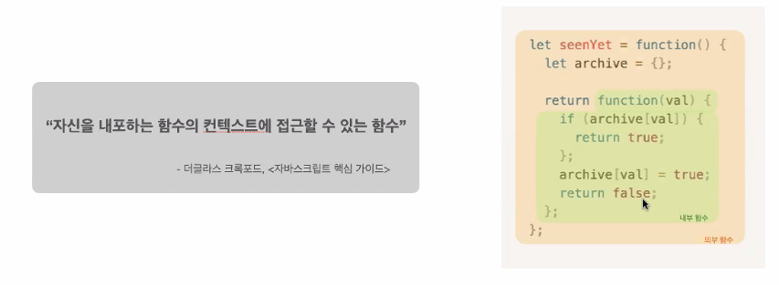 > 클로저를 한 문장으로 정의해보면 어떨까?