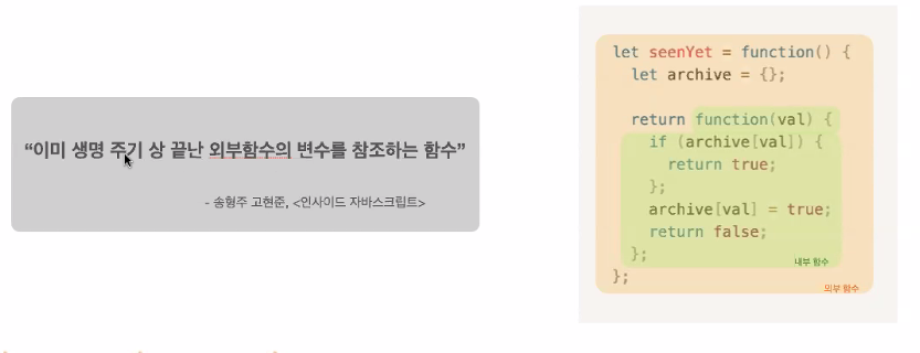 ## 함수가 리턴되고 나서 계속해서 외부함수의 변수를 참조할 수 있냐 없냐!!