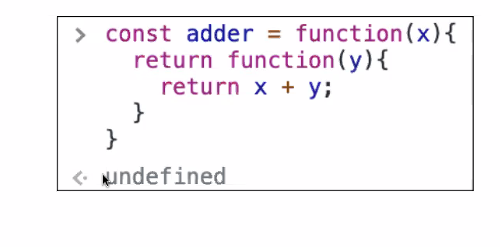 function adder(x => y => x+y ) const adder = function(x => { return function(y){ return x+y