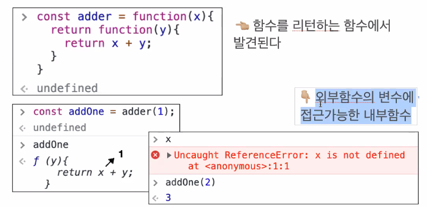 클로저는 리턴하는 함수에서 발견된다.