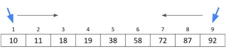 2개의 포인터가 양 끝에서 서로를 향해 이동