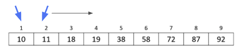 2개의 포인터가 모두 왼쪽에서 시작해서 같은 방향으로 이동