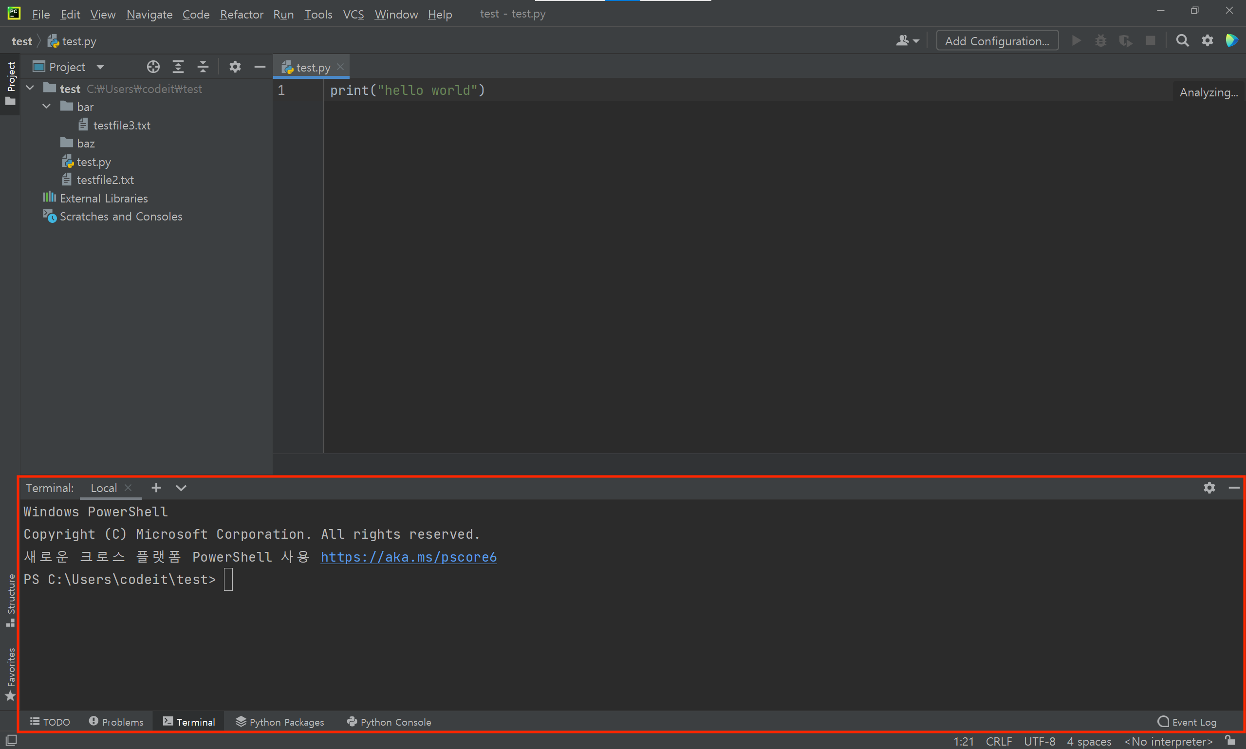 PyCharm의 터미널