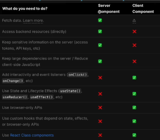 서버컴포넌트와 클라이언트 컴포넌트를 사용해야하는 상황별 표