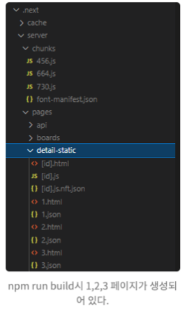 위 코드가 처리되면 이렇게 파일이 정적으로 미리 생성되어있다. 어떤 게시판의 공지글 같은것이 예시가 될 수 있다. 디테일한 페이지 이면서도 변경할 사항이 크게 없다.