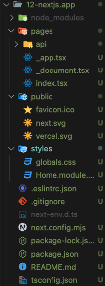 npx create-next-app@latest를 하고 나면 생성되는 폴더 구조이다.