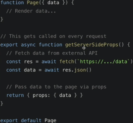 해당 메서드로 요청이 오면 next.js는 각 요청마다 리턴되는 데이터를 pre-render한다.