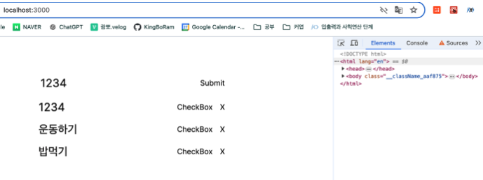 그리고 체크박스를 눌러서 onChange가 일어나면