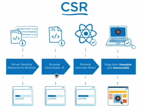 → 결론적으로 CSR은 SearchEngineOptimization ( 검색 엔진 최적화, 검색엔진에 친화적인 사이트를 구축하여 광고가 아닌 자연 검색을 통해서 트래픽의 양과 질을 극대화 하는 작업 )에 불리하다.