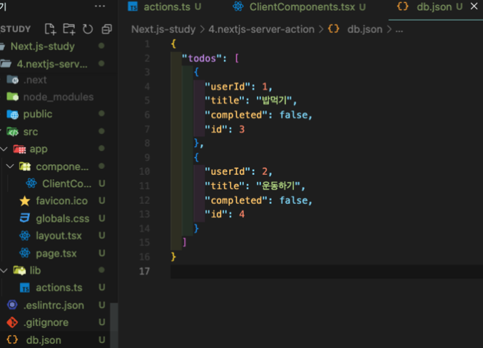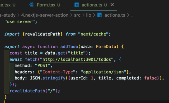 그리고 그 내부에서 똑같이 'use server'해주면된다.
