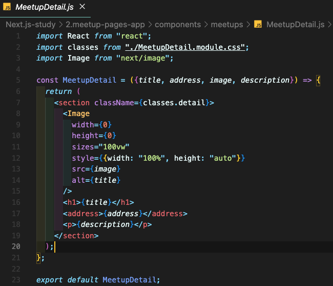 pages/detail-static/[id].js 와 같이 Next.js에서 동적 경로는 파일명에 대괄호를 붙여서 정의한다. 앞에서 게시글 목록을 생성한다고 예를 들었는데 거기에서 게시글을 하나씩 눌러서 해당 게시글의 상세페이지를 봐야하는 상황에서 게시글의 id를 넣어서 동적으로 페이지를 생성한다. import React from "react";