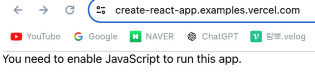 리액트 샘플 사이트 ( https://create-react-app.examples.vercel.com/ ) 에 접속해서 javascript disable을 적용하면