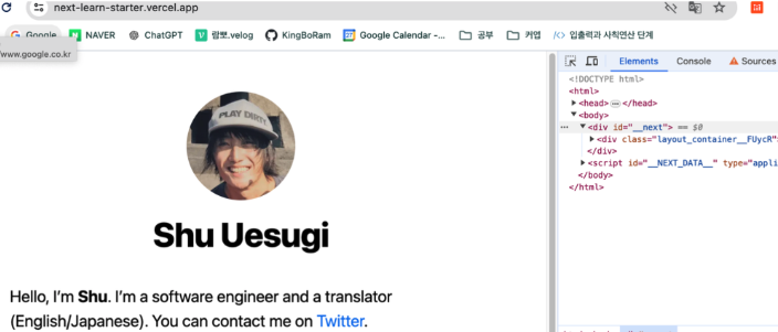 +) 또 다른 특징은 프레임워크라는거다. 리액트는 UI를 만드는데 특화되어있는 라이브러리였다면 next.js는 전반적인 기능을 모두 제공하는 프레임 워크다. 개발에 필요한 대부분의 기능이 갖춰져있기 때문에 dom이나 상태관리를 위해 리액트처럼 라이브러리를 설치하거나 일일이 설정할 필요가 줄어든다. (없지는 않다.) 자체적으로 기능을 가지고 있다는 것은 라이브러리나 모듈의 호환성으로 인한 문제가 줄어들게 된다는 것이다. (싱크가 잘 맞다.)