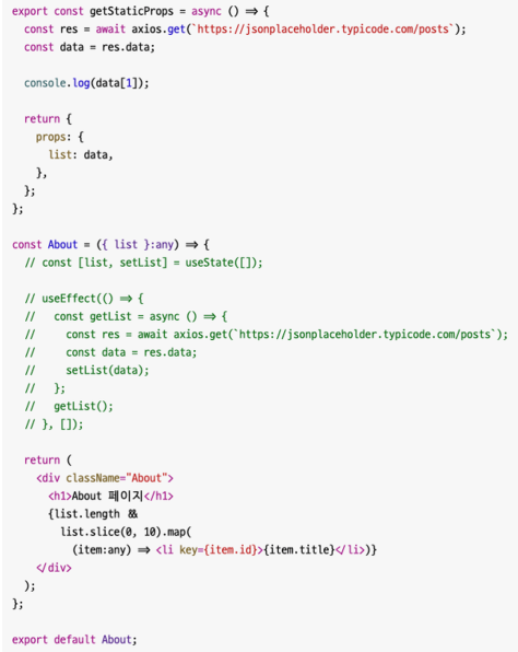 위 코드에서는 그렇게 받아온 data를 기반으로 About 페이지의 게시글 목록을 생성하고 있다.