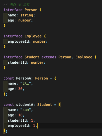 으로 모든 자바스크립트 코드는 typescript에서 동작하며 구문적으로 유효하다.