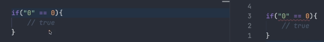 일치연산자가 아니라 동등연산자를 사용하면 js는 자동형변환을 해서 두값을 비교하지만, ts는 안봐준다.