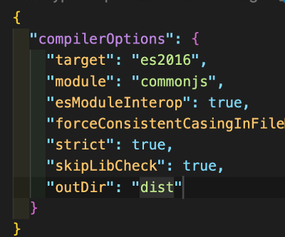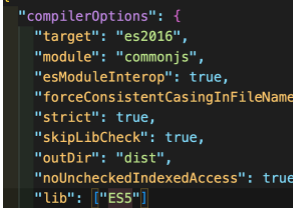 다 없애고 나면 이렇게 남는데, 타입스크립트 프로젝트를 시작하기에 알맞은 옵션만 기본적으로 활성화 되어 있다고 보면 된다. 하나씩 살펴보자target : 자바스크립트가 호환되는 es버전 설정