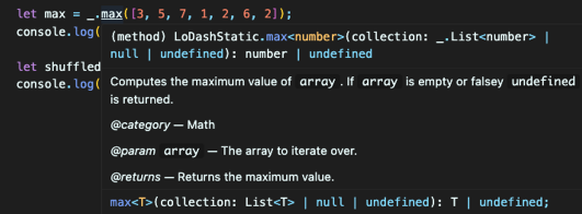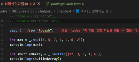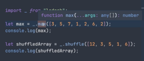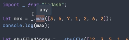 max는 배열에서 제일 큰 값을 찾는거고 셔플은 무작위로 섞는거다. 밑줄은 .d.ts가 없어서 그렇다는데 일단 무시해도 실행은 된다.
