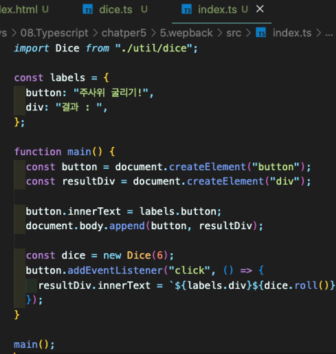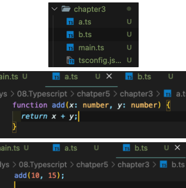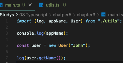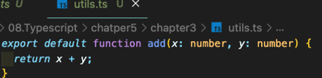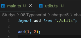 utils 파일의 add 함수를 export하면 main파일에서 import해서 가져와서 사용 할 수 있다. 파일명에 .ts/.js/.tsx/.jsx와 같은 확장자명은 사용하지 않아도 된다.