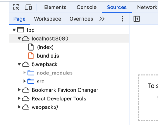 브라우저가 켜지고 잘 동작한다. 소스탭을 보면 bundle.js가 생성된걸 볼 수 있다. 우리의 파일을 하나로 번들링 한 모습이다. 해당 파일로 화면이 그려진다.