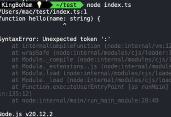 tsc 파일명하면 오류가 났다. 이게 오류가 아니라 원래 그렇다고한다. ts-node라는 라이브러리를 설치해야 하면 오류없이 컴파일이 된다.