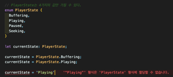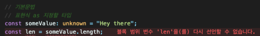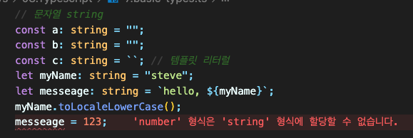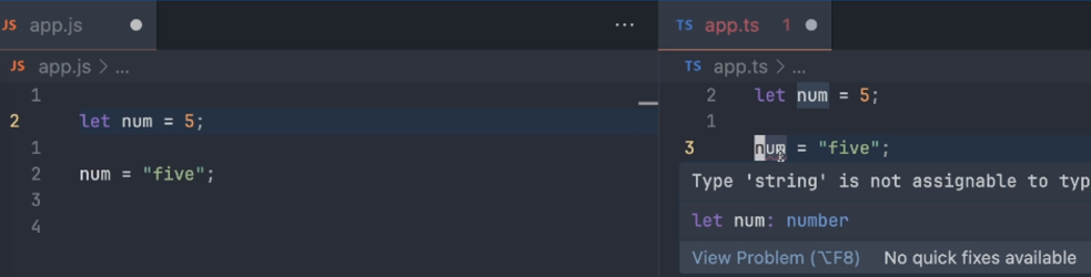 js의 경우 처음에 숫자를 할당하고 문자를 할당해도 문제가 없지만, ts의 경우 string을 할당했다고 오류가 난다.