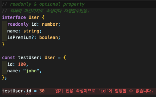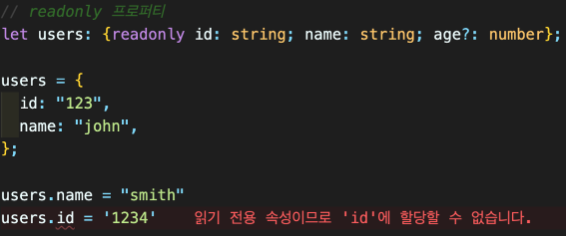 js의 경우 프로퍼티에 오류가 나도 오류를 발생시키지 않지만, ts의 경우 바로 오류를 표시한다.