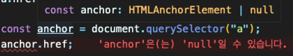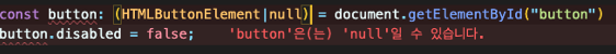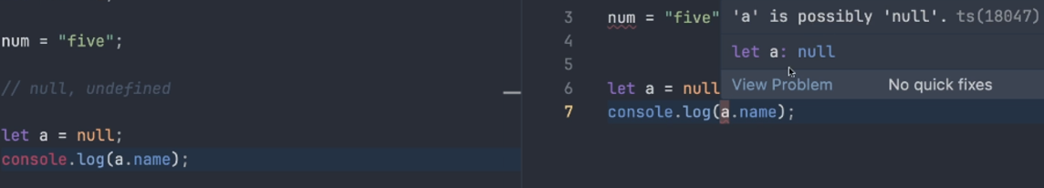 js의 경우 값을 가지지 않는 null에 마침표연산자를 사용해도 오류가 나지 않지만, ts의 경우 오류를 발생시킨다.