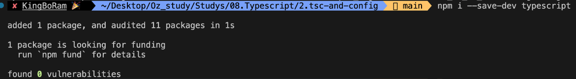 tsc -v : 설치 후 터미널에서 버전을 확인해서 버전이 명시되면 설치가 잘 되었다는 뜻이다.