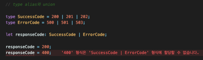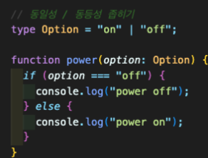 그래서 login, logout에 의해서 문자나 null로 모두 할당 될 수 있다. null은 이렇게 유니언타입에서 종종 사용된다.