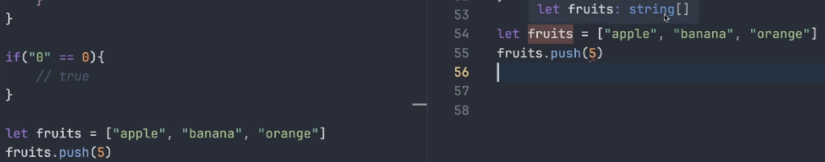 js는 배열에 문자열만 넣다가 숫자를 넣어도 문제 없다. ts는 암시적으로 자기가 이 배열은 string이 들어온다고 타입을 지정했는데 숫자가 들어왔다고 오류를 발생시킨다.