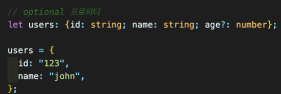 선택적 정적 타이핑 : ts의 정적 타입은 선택적이다. (타입 검사를 필요로 하는 곳에만 넣어도 된다.)