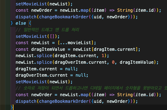 그런데 드래그를 하고 나면 저장된 영화 id의 타입이 숫자형으로 바뀌고 있었던 것이다. 이걸 어떻게 발견했냐면