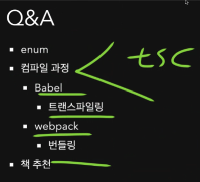 질문 2) 컴파일이 추가되면 브라우저에서 실행 시간이 늘어나나요? 라고 물어봤는데, 정확하게 말해서 실행전에 컴파일 되는거기때문에 실행시간이랑은 상관이 없다고 한다.