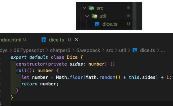 랜덤하게 값을 하나 뽑아주는 클래스를 만든다. 위 클래스는 숫자를 받아서 1~dice 사이의 랜덤한 숫자를 반환한다.