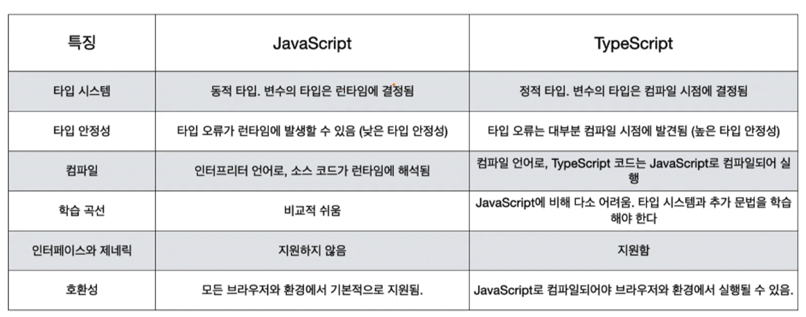 -> 정적 타입 : 컴파일 시에 타입이 결정되며, 런타임에는 변경되지 않아서 코드가 실행 되기 전에 타입 오류를 잡을 수 있고 런타임에 오류가 발생하지 않아 안전성이 높음 = ts