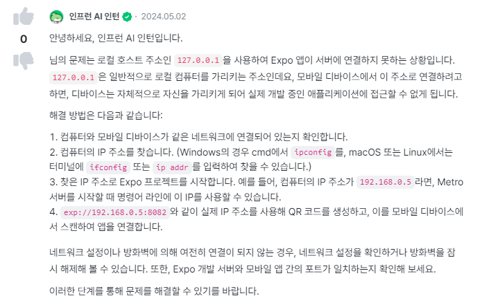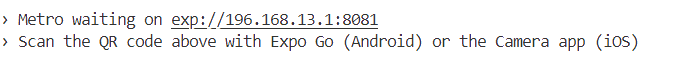 찾은 IP 주소를 사용하여 Expo 프로젝트를 시작한다.