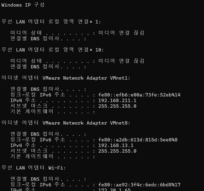 그와중에 ipconfig 안열림
