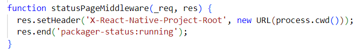 - Go to node_modules/@react-native-community/cli-server-api/build/statusPageMiddleware.js