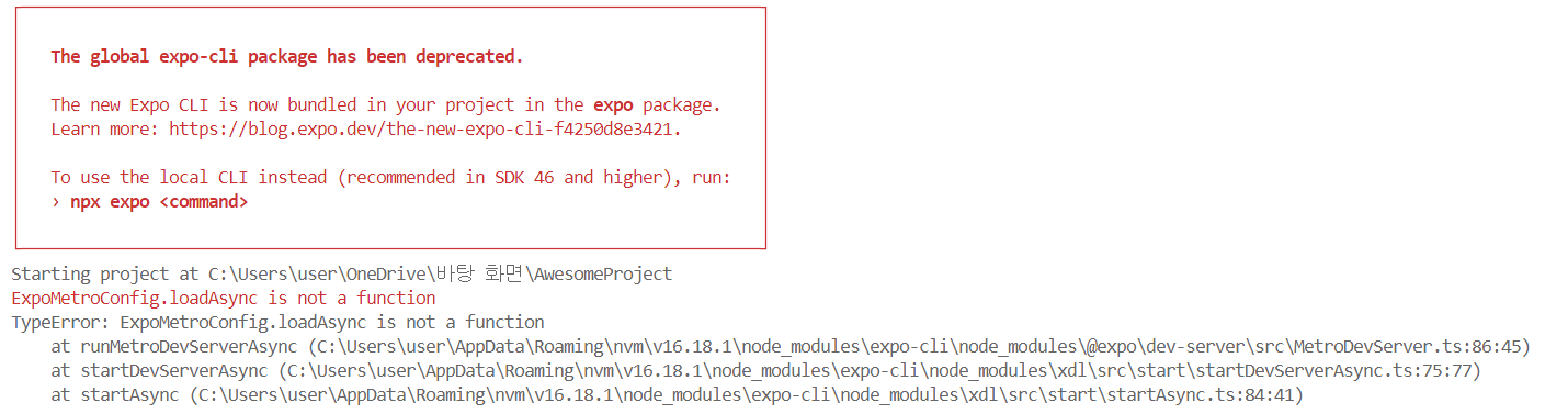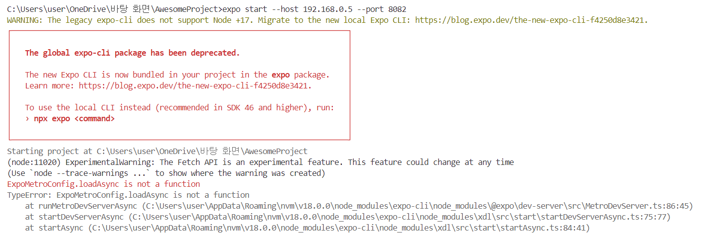 Expo CLI 이전 버전이 Node.js 17을 지원하지 않아서 최신 버전의 Expo CLI를 사용하거나 Node.js 버전을 조정해야 한다..