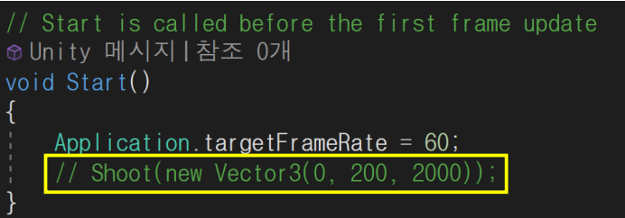 ▪ Start 메서드에서 Shoot 메서드를 호출하므로 게임 시작과 동시에 날아감