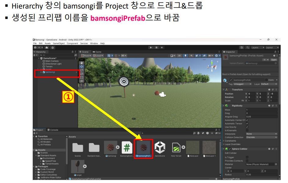 ▪ bamsongiPrefab 변수는 이미 public으로 선언했으므로 Inspector 창으로
