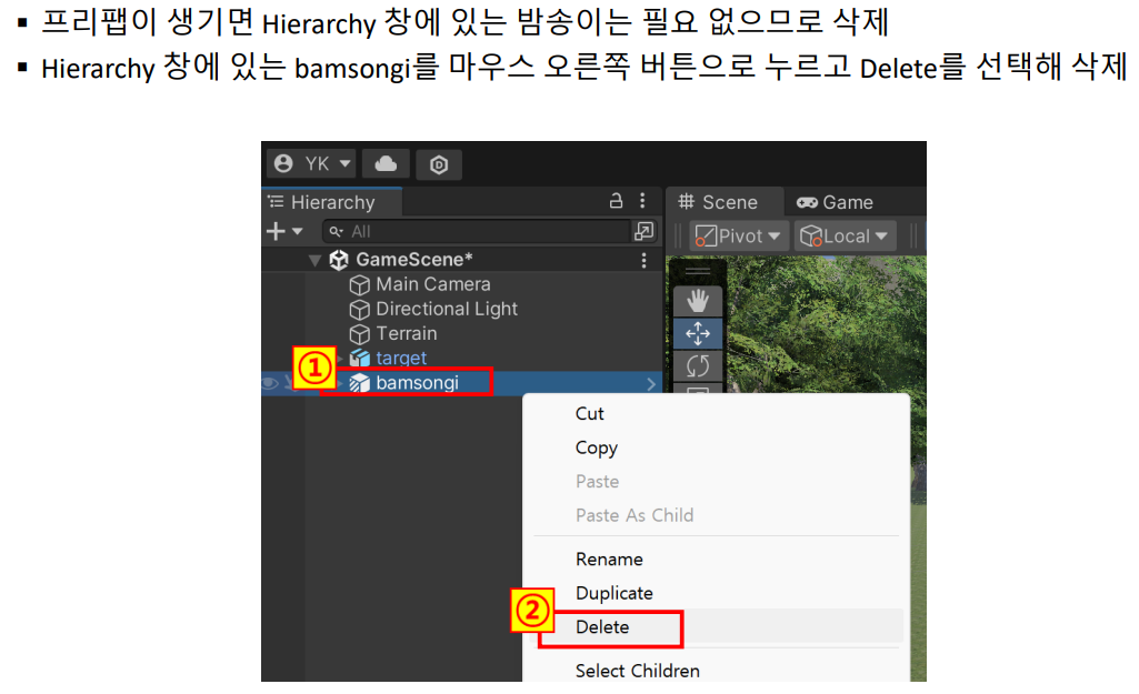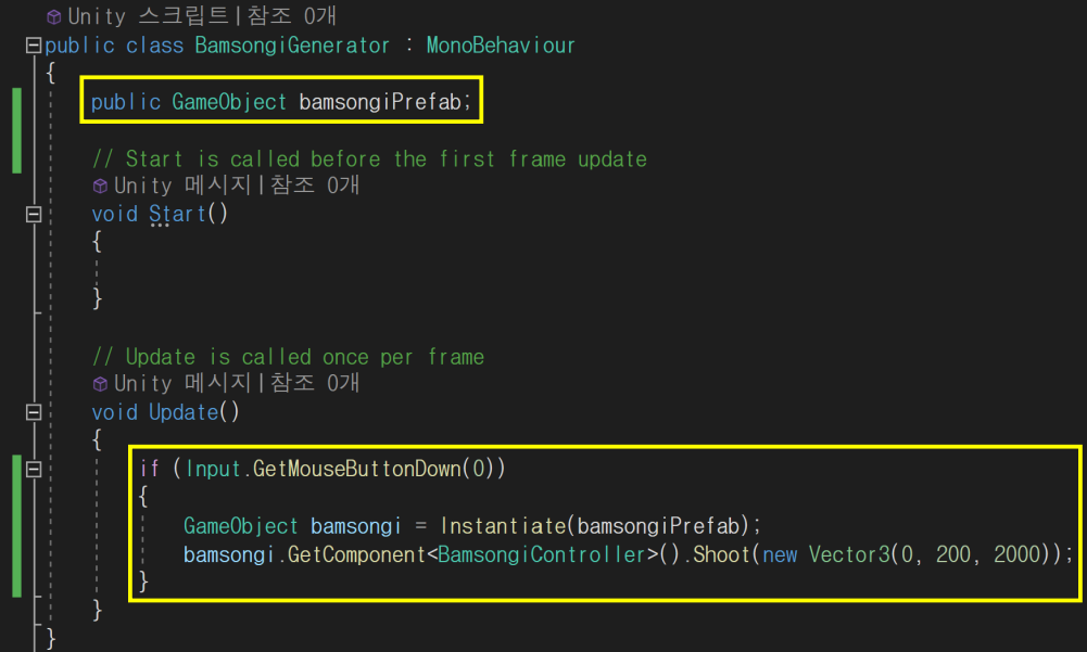 ▪ bamsongiPrefab 변수를 선언