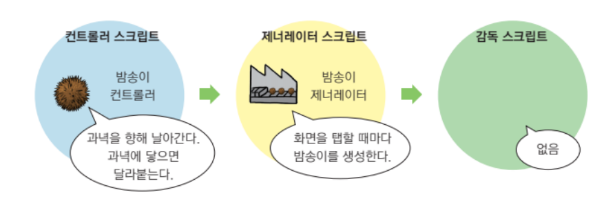 ▪ 3D 게임도 2D와 마찬가지로 컨트롤러 스크립트 → 제너레이터 스크립트 → 감독 스크립트 순서로 만듦