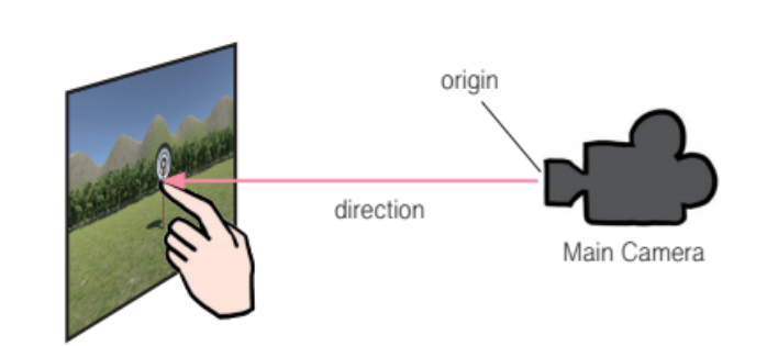 ▪ ScreenPointToRay 메서드는 카메라에서 탭 좌표로 향하는 벡터에 따른 Ray 클래스를 반환