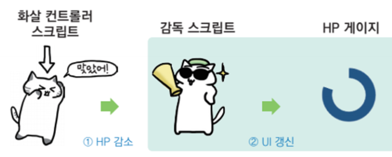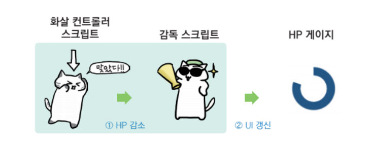 ▪ 나중에 화살 컨트롤러에서 HP 게이지 표시를 줄이는 처리를 호출할 것을 고려해