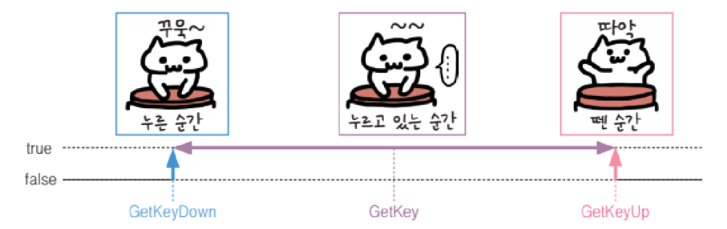 // 매개변수로 전달한 키가 눌리는 순간 true 한 번 반