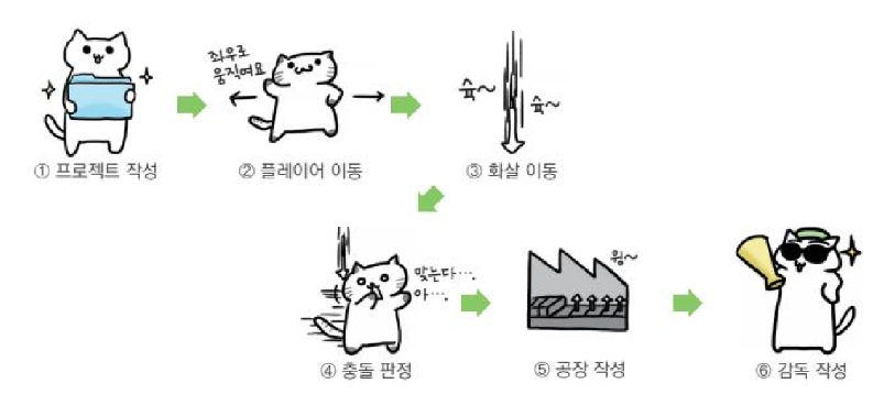 // 오브젝트(화살)를 프레임마다 등속으로 낙하